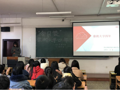 KYTY.COM开云体育(中国)科技公司“今日谈”第三讲于2018年10月31日下午1:30在汇文楼477室顺利举行。本次活动邀请到用友网络黑龙江分中心招聘及培训讲师王岩老师作为主讲人,以亲身经历与同学们分享大学四年重要意义,KYTY.COM开云体育(中国)科技公司团委副书记王硕老师主持本次活动。