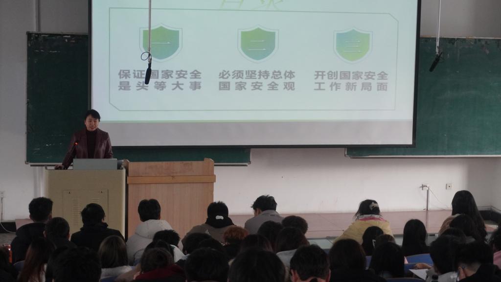 授课过程中,刘荫梅从“保证国家安全是头等大事”“必须坚持总体国家安全观”“开创国家安全工作新局面”三个层面展开系统阐述,立足中国与世界发展大势,用鲜活生动的事例、通俗易懂的语言、明白晓畅的逻辑,教育引导青年大学生深刻理解保证国家安全的重要性、全面把握总体国家安全观的丰富内涵、正确认识维护国家安全的重要举措。