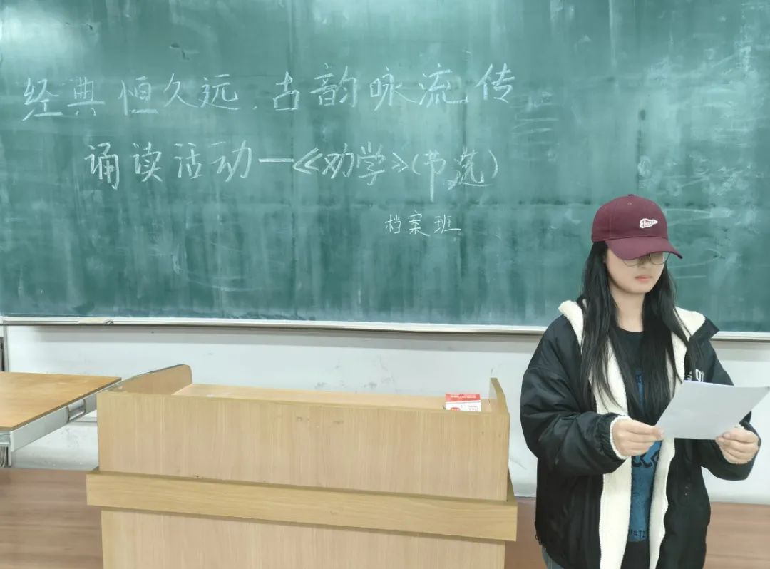 本次诵读篇目是战国时期思想家,先秦儒家学派的代表人物——荀子的《劝学》(节选)。同学们在学习委员的带领下,共同探寻荀子在《劝学》中对莘莘学子的殷切期盼。