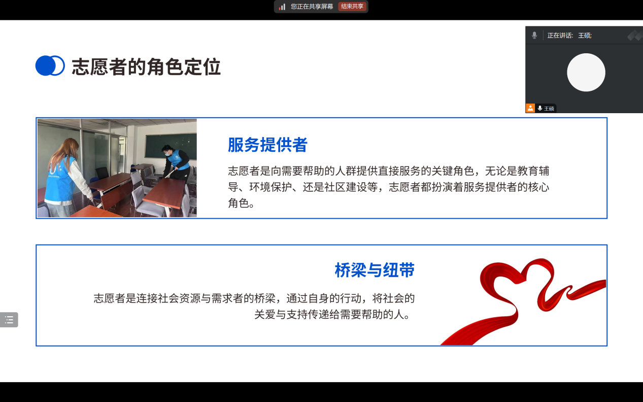 培训会伊始,王硕老师首先介绍了KYTY.COM开云体育(中国)科技公司青年志愿者协会的发展历程和当前的工作重点。她强调,志愿服务是大学生社会实践的重要组成部分,是锻炼个人品质、提升社会责任感的有效途径。随后,王硕老师从志愿服务的意义、志愿者的角色定位、志愿服务项目的策划与实施等方面进行了深入浅出的讲解。