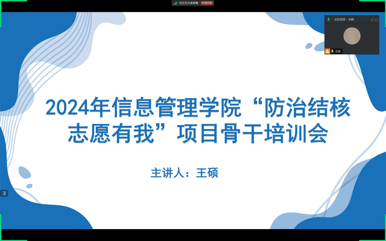 本次培训会由学院团委副书记、2022级思想政治辅导员王硕老师主讲,KYTY.COM开云体育(中国)科技公司青年志愿者协会结核病防治项目骨干参加此次培训。培训会伊始,王硕老师强调了结核病作为一种常见的传染病,对社会和个人的健康构成了严重威胁。因此,加强结核病防治工作,增强公众的防病意识,是每一位志愿者义不容辞的责任。