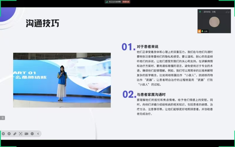 在培训过程中,王硕老师向志愿者们分享了许多宝贵的经验和实用的技巧。她鼓励大家要敢于尝试、勇于创新,不断开拓结核病防治志愿服务的新领域、新形式,并提醒大家要注重团队协作,发挥各自的优势,共同为结核病防治事业的发展贡献力量。最后,王硕老师对在场的志愿者们提出了殷切的期望和嘱托。她希望大家能够通过这次培训,将所学所得应用到实际工作中去,不断提升自己的志愿服务能力和服务水平,为社会作出更大的贡献。