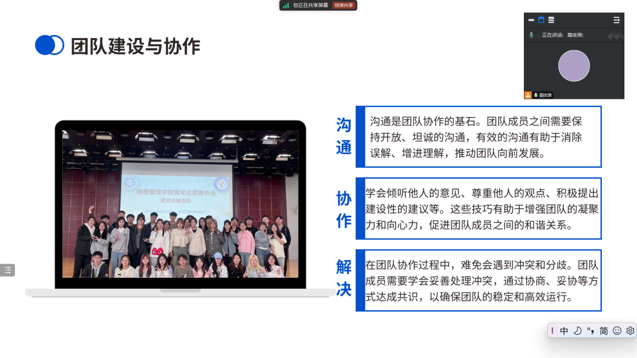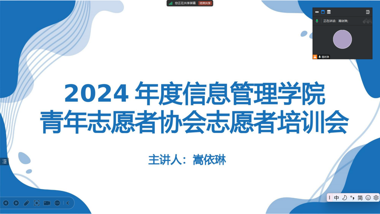 会议伊始,嵩依琳首先强调了信管青协志愿者培训会的重要性。她指出,志愿服务是现代社会文明进步的重要标志,也是大学生锤炼品格、增长才干的重要途径。通过培训,志愿者们能够更好地理解志愿服务的真谛,掌握实用的服务技巧,提升自己的综合素质。这不仅有助于个人成长,更能为学院的志愿服务事业注入新的活力和动力。
