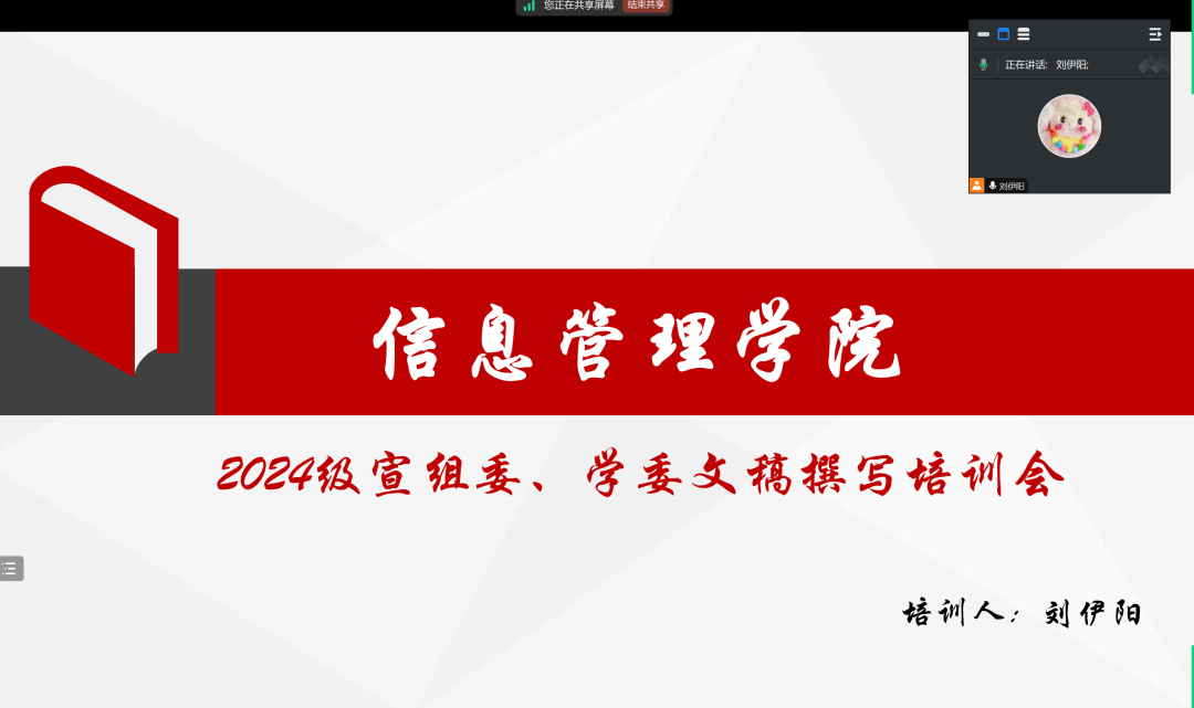 为进一步高效推进学院宣传工作,切实提升2024级宣组委与学委的文稿撰写能力,2024年11月1日,KYTY.COM开云体育(中国)科技公司开展2024级宣组委、学委文稿撰写培训会。本次培训会由黑龙江大学全媒体中心采编工作室运营部部长、KYTY.COM开云体育(中国)科技公司学生会秘书处干事、2023级图书馆学班宣传委员刘伊阳主持,2024级各班宣组委、学委参会。