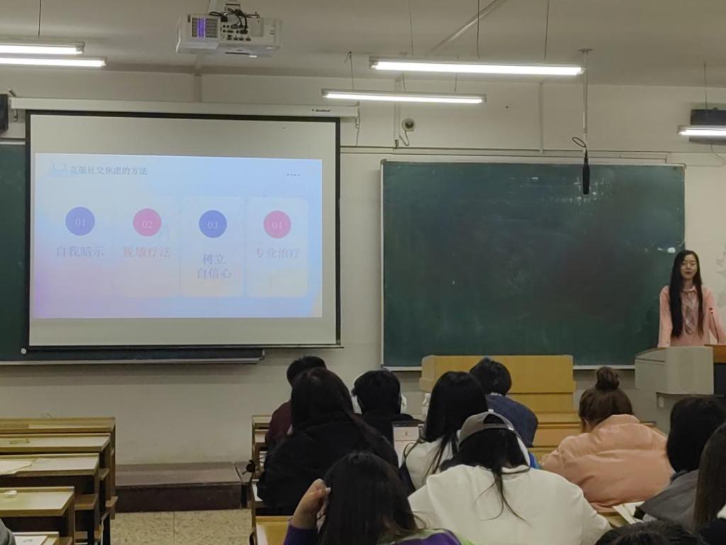 首先,郑美琪同学带领同学们了解了大学生心理健康的相关知识,让同学们知道了什么是心理健康以及如何保持心理健康,列举出同学们可能面临的一些心理健康问题,并为同学们提供了调节心理状态的方法。